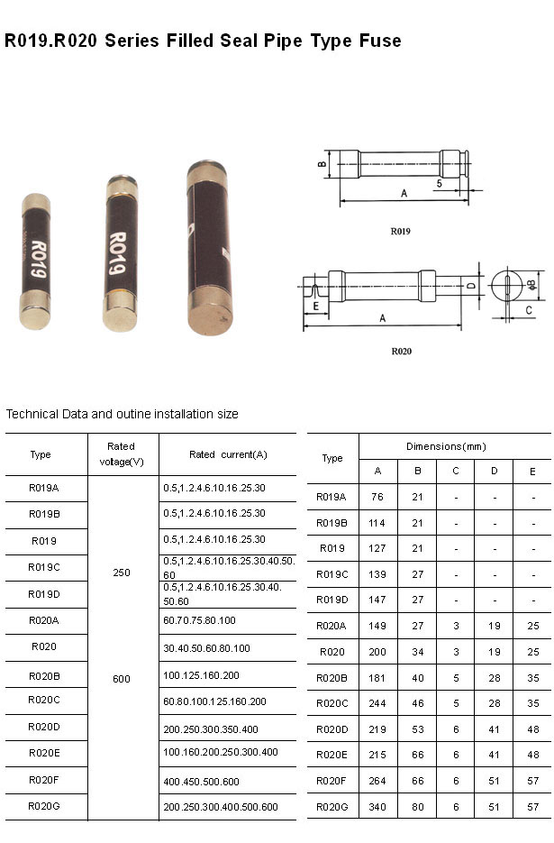 R019 R020 Series Filled Seal Pipe Type Fuse