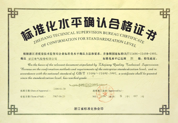 标准化水平确认合格证