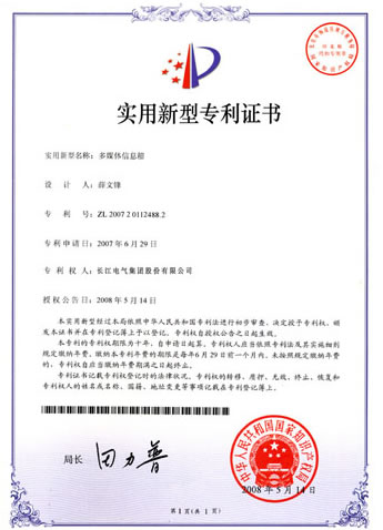 多媒体信息箱实用新型专利证书