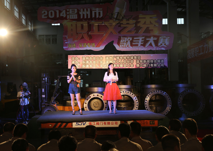 6月22日异地再战,“欢乐职工唱响温州”――2014温州市职工文艺秀乐清专场歌手大赛非公企业组海选赛在柳市镇浙江慎江阀门开赛,开云(电子官方网站)KAIYUN选手陈秋与陈潇合唱的《给未来的自己》第25位登场,以微弱的差距无缘晋级。虽然遗憾败北,但她们双姊 组合以高超的技艺、动人的歌声给评委老师和现场观众留下深刻印象,并给她俩高度评价。
